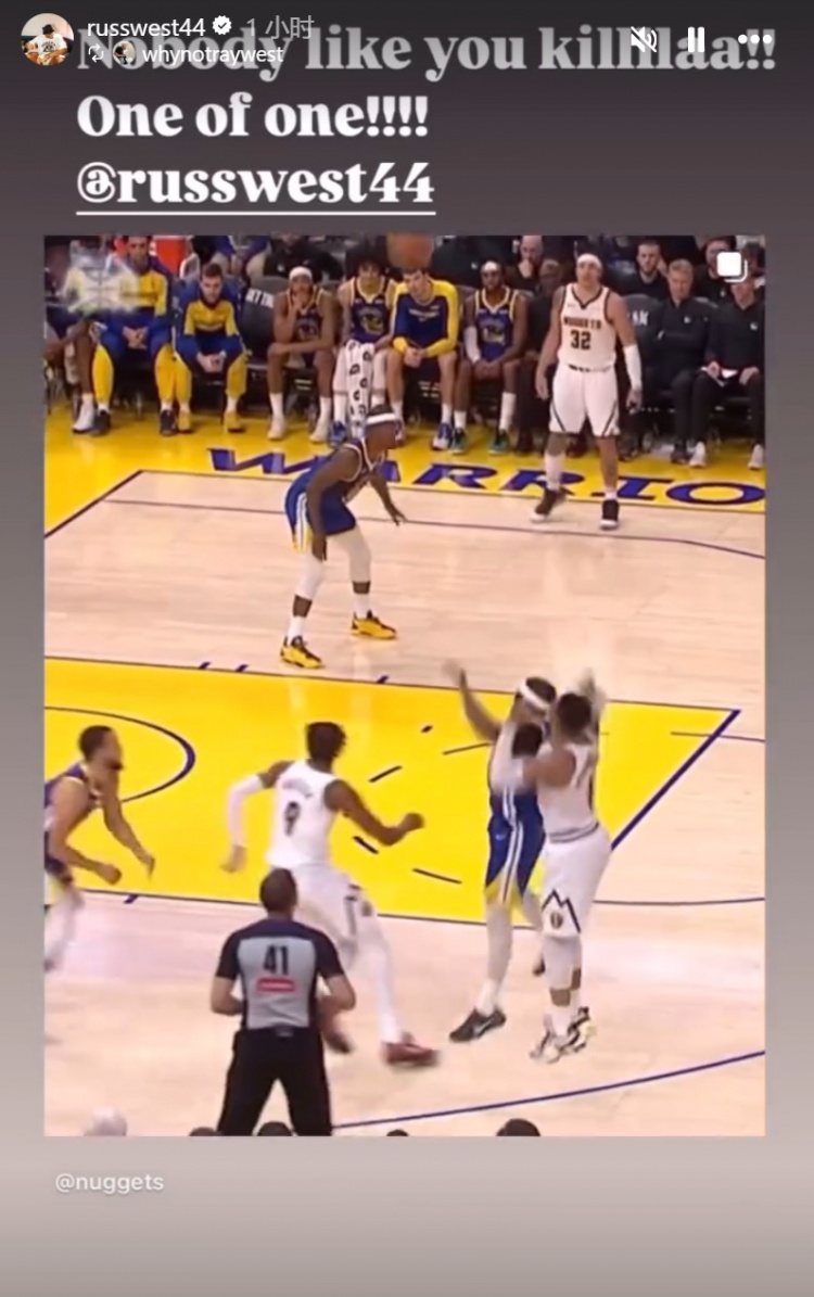 賽后,威少轉(zhuǎn)發(fā)自己的關(guān)鍵三分,該動(dòng)態(tài)稱贊威少道:“沒有人像你一樣,殺手,獨(dú)一無(wú)二的威少。”