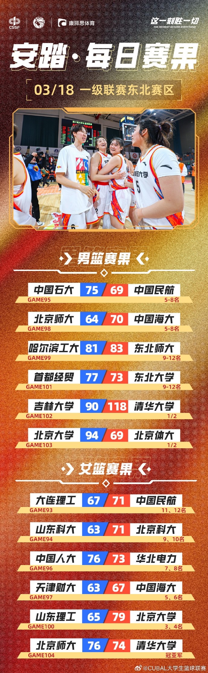 發(fā)布時(shí)間:2025年03月18日 23:58點(diǎn)擊:欄目:籃球新聞 賽果速遞!男籃方面,清華北大再次會(huì)師決賽。女籃方面,北京師大雙加時(shí)險(xiǎn)勝清華大學(xué),時(shí)隔三年再次拿回東北王的寶座! 除特別注明外,本站所有內(nèi)容均為九球直播整理排版,轉(zhuǎn)載請(qǐng)注明出處:CUBAL今日賽果:北師大女籃雙加時(shí)險(xiǎn)勝清華大學(xué) 拿回東北王的寶座 本文標(biāo)簽: 籃球 CBA 中國(guó)籃球 CUBAL 轉(zhuǎn)載