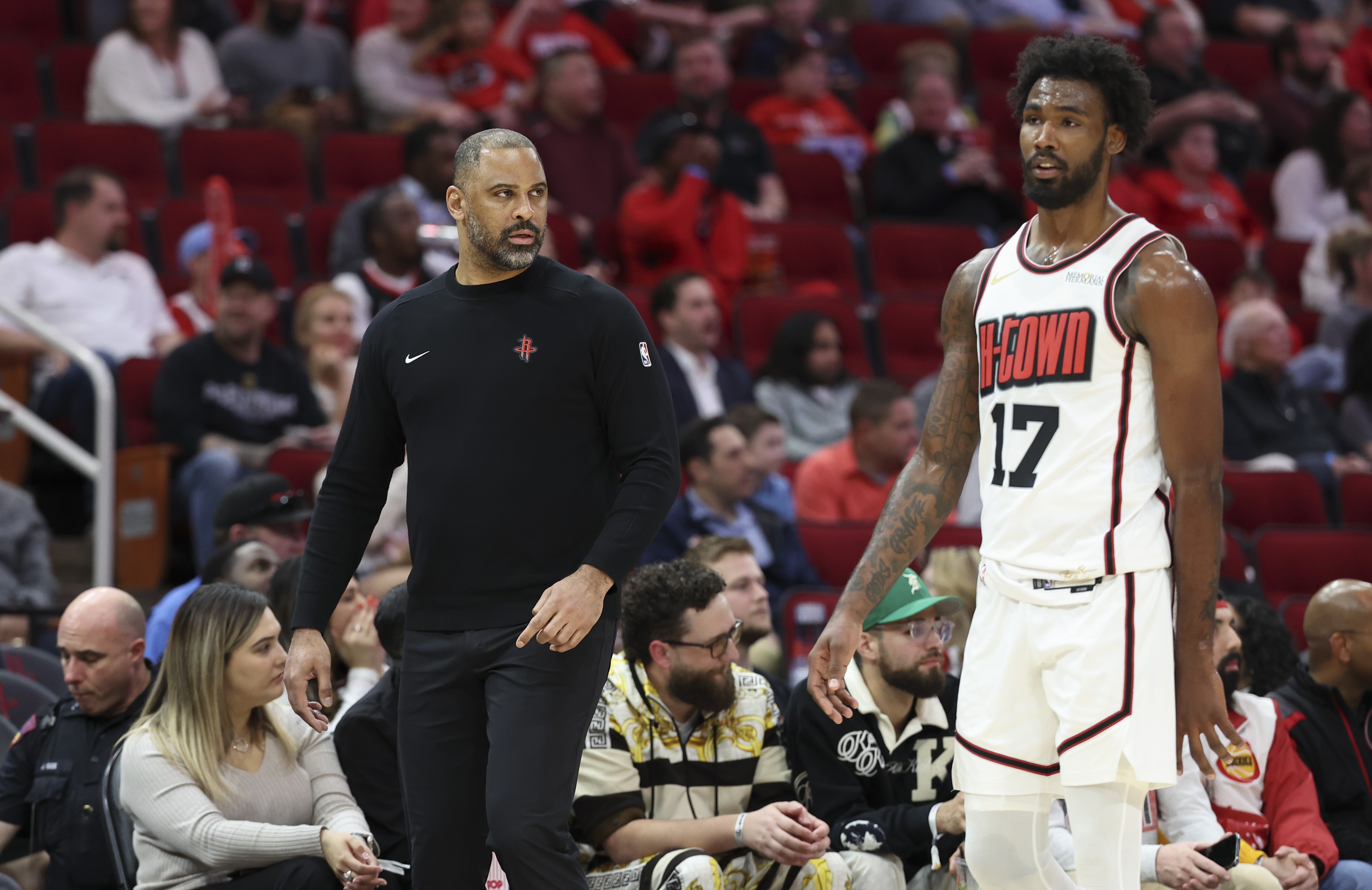 過去3場比賽,火箭與對手的籃板數(shù)對比為58-35、54-36、67-34。三場比賽火箭比對手多搶74個籃板。