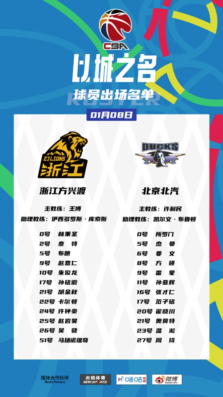 發(fā)布時(shí)間:2025年01月08日 18:50點(diǎn)擊:欄目:籃球新聞 1月8日訊 CBA常規(guī)賽,廣廈將在稍后對陣北京。賽前,CBA官方公布了本場大名單,其中博班迎來首秀,溫淞在列,曾凡博缺陣。具體如下:廣廈:林秉圣、奈特、布朗、趙嘉仁、朱俊龍、孫銘徽、胡金秋、卡爾頓、許鐘豪、趙巖昊、吳驍、博班。北京:所羅門、杰曼、姜文、方碩、雷蒙、孫亞輝、張才仁、范子銘、翟曉川、奧莫特、溫淞、周琦。 除特別注明外,本站所有內(nèi)容均為九球直播整理排版,轉(zhuǎn)載請注明出處:強(qiáng)強(qiáng)對話!廣廈VS北京大名單:博班迎首秀 孫銘徽&周琦在列 本文標(biāo)簽: CBA 中國籃球 籃球 廣廈 北京 周琦 孫銘徽 胡金秋