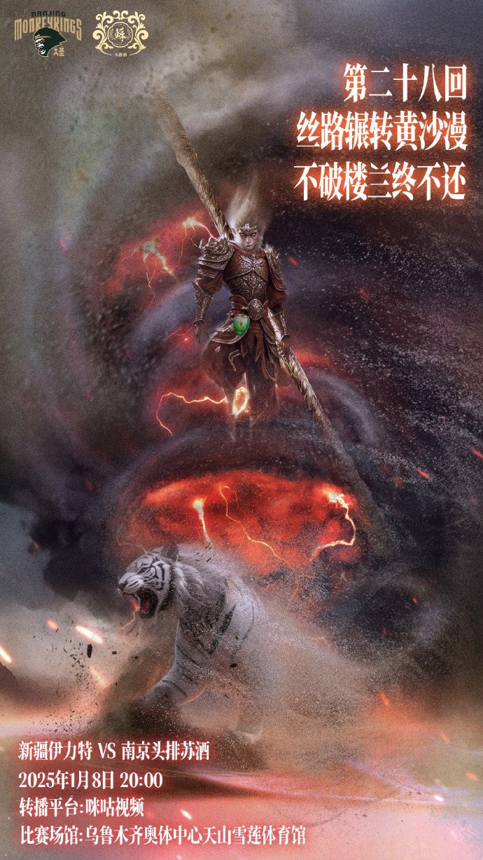 發(fā)布時間:2025年01月08日 18:50點擊:欄目:籃球新聞 1月8日訊 CBA常規(guī)賽,同曦今晚將對陣新疆。賽前,同曦官方發(fā)布了對陣海報,配文:“第二十八回,絲路輾轉(zhuǎn)黃沙漫,不破樓蘭終不還?!?/p>目前,同曦13勝14負(fù)排名積分榜第十一。 除特別注明外,本站所有內(nèi)容均為九球直播整理排版,轉(zhuǎn)載請注明出處:同曦發(fā)布對新疆海報:第二十八回 絲路輾轉(zhuǎn)黃沙漫&不破樓蘭終不還 本文標(biāo)簽: CBA 中國籃球 籃球 同曦 新疆