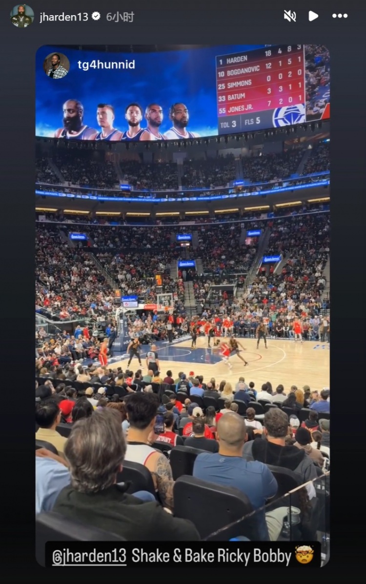 比賽中,哈登雙變向直接晃暈?zāi)祭?,驚艷全場(chǎng);賽后,哈登也轉(zhuǎn)發(fā)了這一精彩瞬間。