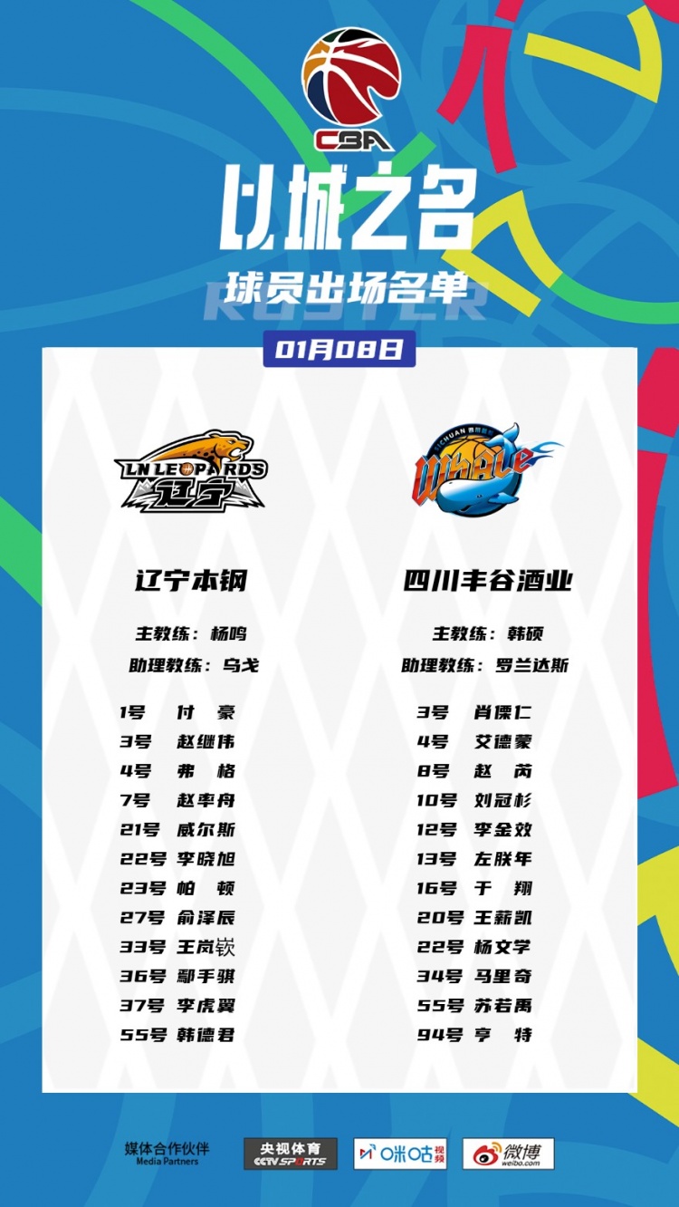 發(fā)布時間:2025年01月08日 19:50點擊:欄目:籃球新聞 1月8日訊 CBA常規(guī)賽,遼寧VS四川的比賽將在稍后開始。賽前,CBA官方公布了本場大名單,其中遼寧三外援在列,四川同樣三外援。具體如下: 除特別注明外,本站所有內(nèi)容均為九球直播整理排版,轉(zhuǎn)載請注明出處:遼寧VS四川大名單:趙繼偉領(lǐng)銜 兩隊6外援悉數(shù)在列 本文標(biāo)簽: CBA 中國籃球 籃球 遼寧 四川 趙繼偉