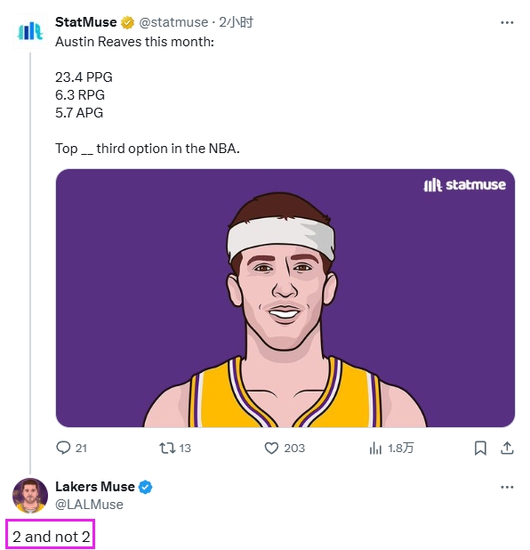 湖人媒體Lakers Muse評論道:“前二,但不是第二?!?/p>