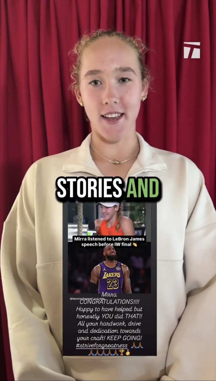 安德烈娃在近期比賽奪冠后談到自己在賽前看了詹姆斯的演講,從而受到激勵(lì),全力以赴拿下勝利。