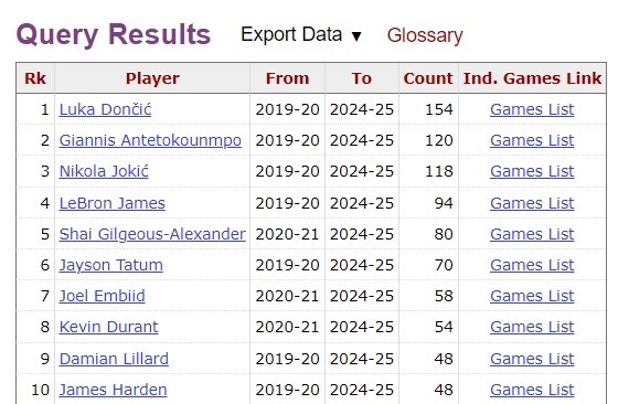 除特別注明外,本站所有內(nèi)容均為九球直播整理排版,轉(zhuǎn)載請(qǐng)注明出處:2020年以來的30+5+5場(chǎng)次榜單:東契奇155場(chǎng)居首 字母哥120場(chǎng)第2