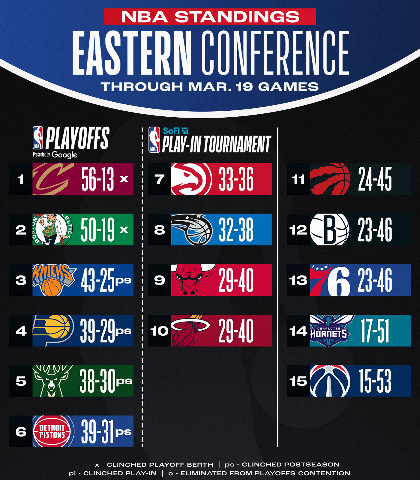 但是,NBA官方顯示他們并未100%鎖定,如果鎖定了會在后方標(biāo)上ps(postseason,至少附加賽),例如尼克斯、步行者、雄鹿和活塞。