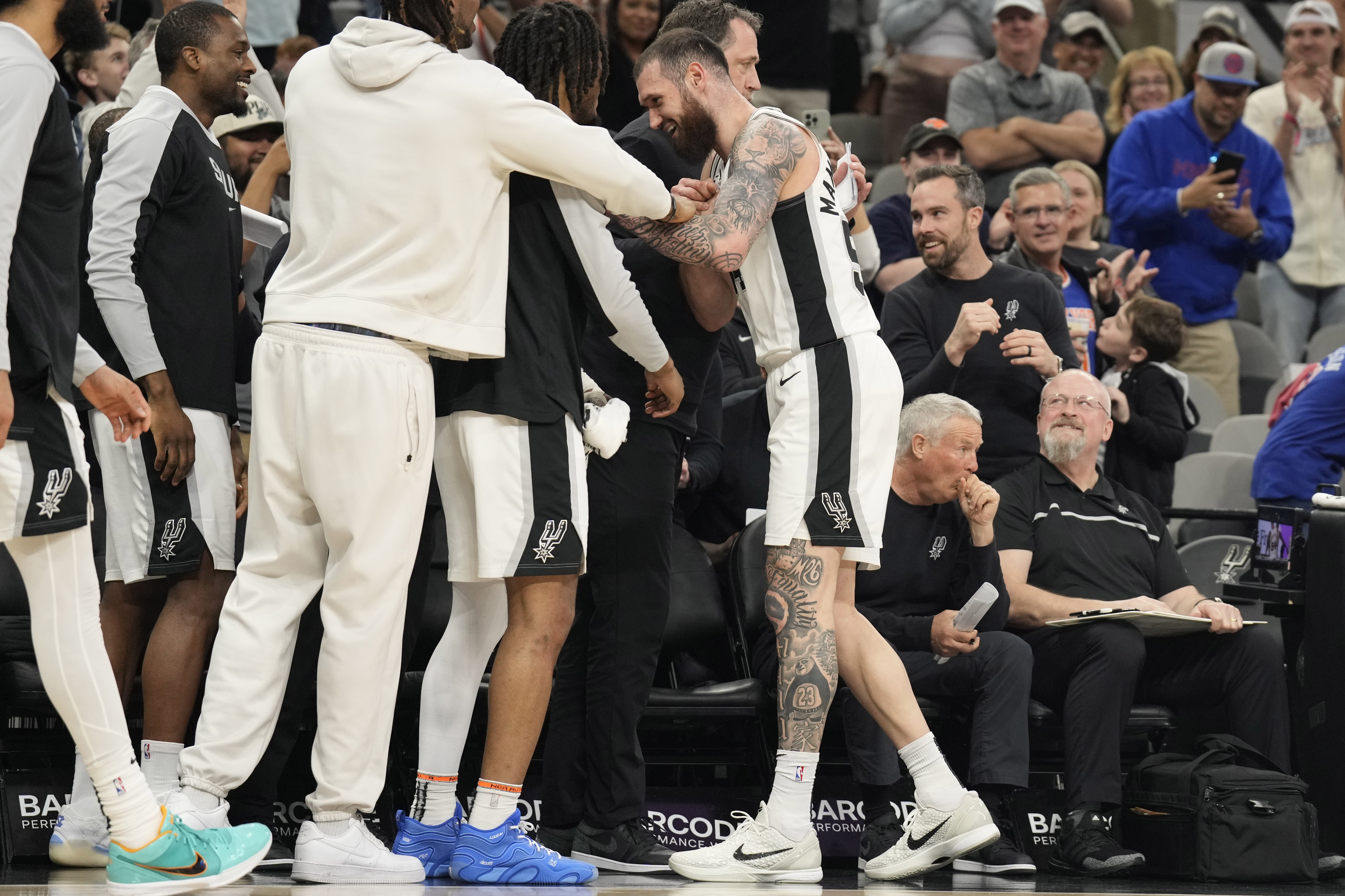 本場比賽,馬刺前鋒馬穆手感爆炸,表現(xiàn)出色,三分球彈無虛發(fā),僅出戰(zhàn)19分27秒,投籃14中13,三分7中7,便得到34分9籃板,正負(fù)值+22。凱爾登得到6分10籃板1助攻。