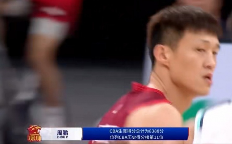 在本場(chǎng)比賽前周鵬的生涯總得分為8384分,在得到這4分后他也超越劉玉棟(8387),排名CBA歷史總得分榜第11位。