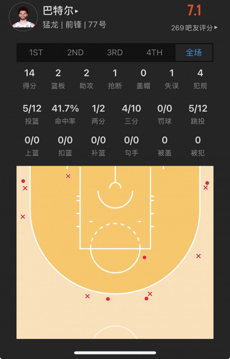 猛龍落選秀 賈米森-巴特爾 登場(chǎng)33.0分鐘