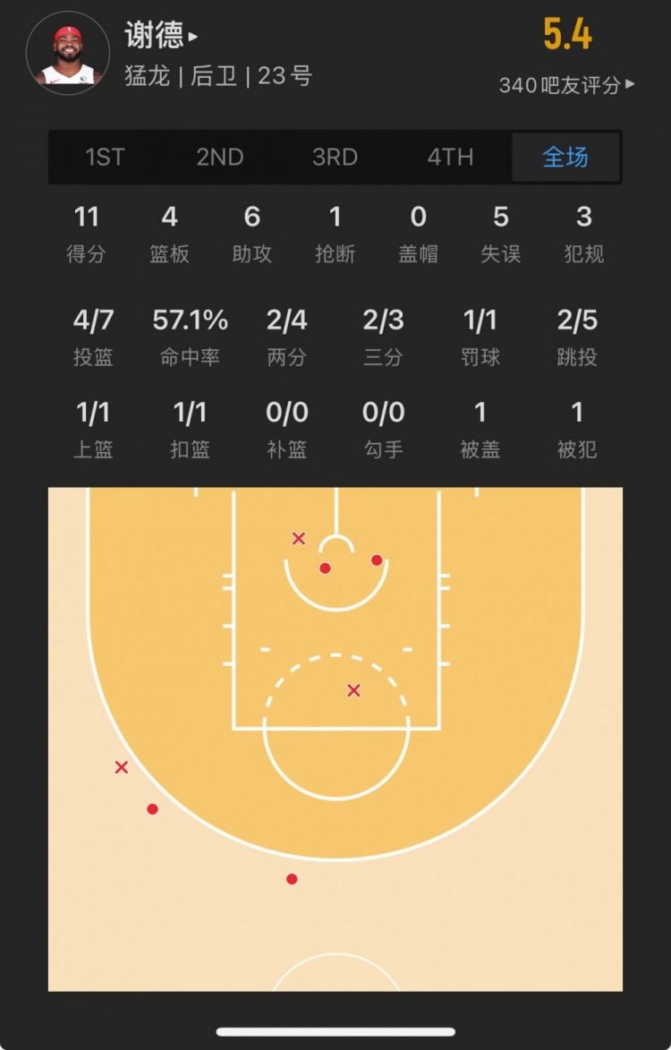 猛龍45號(hào)秀 賈馬爾-謝德 登場(chǎng)26.6分鐘