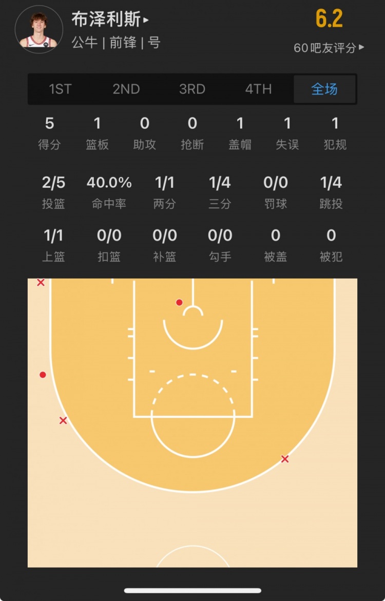 公牛11號(hào)秀 馬蒂斯-布澤利斯 登場(chǎng)14.9分鐘