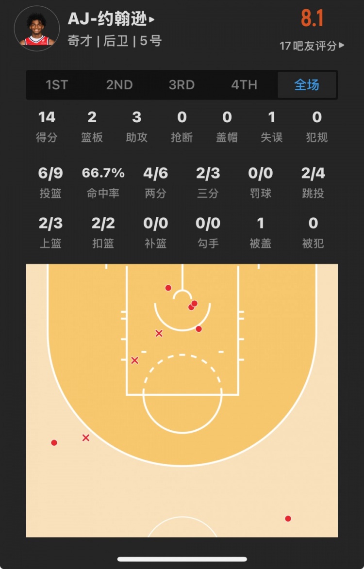 奇才23號秀 AJ-約翰遜 登場22.6分鐘