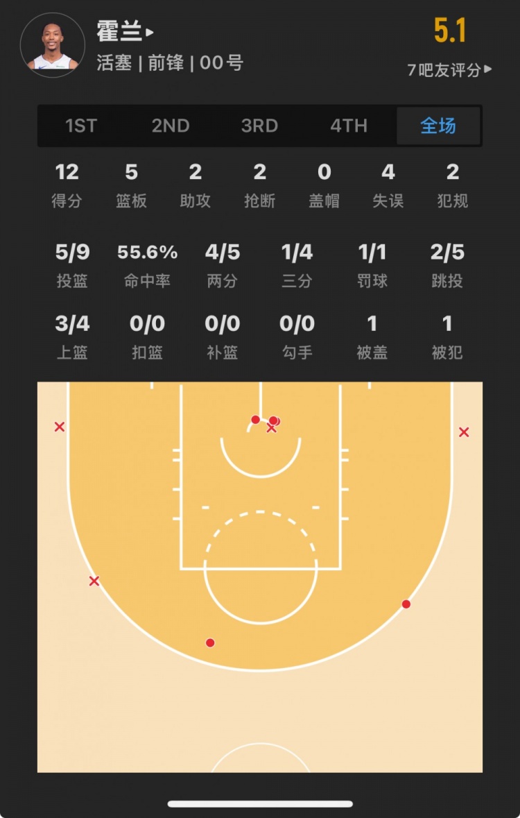 活塞5號秀 羅恩-霍蘭二世 登場12.4分鐘