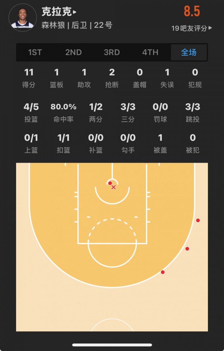 森林狼23年53號秀 杰倫-克拉克 登場14.0分鐘