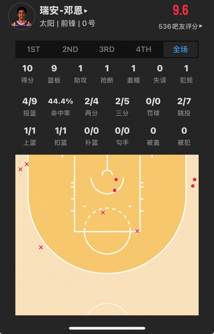 太陽28號秀 瑞安-鄧恩 登場26.3分鐘