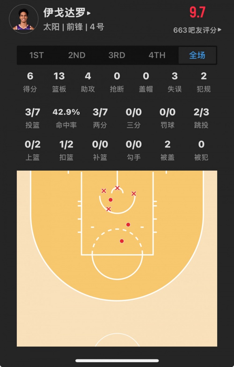 太陽40號秀 奧索-伊戈達(dá)羅 登場44.1分鐘