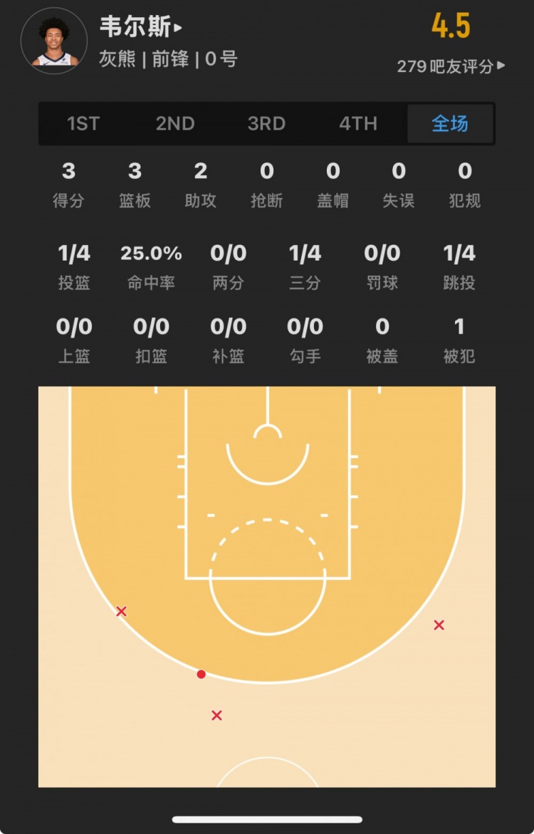 灰熊39號秀 杰倫-韋爾斯 登場14.6分鐘
