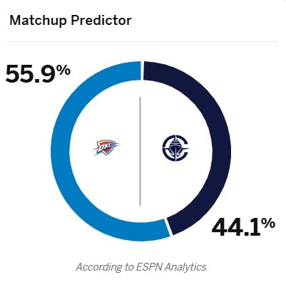ESPN給出了本場比賽勝率預(yù)測,其中雷霆為55.9%,快船為44.1%。