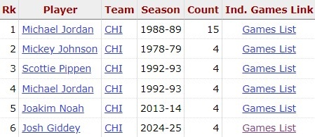 據(jù)統(tǒng)計(jì),這是基迪本賽季第4次三雙,單賽季4次三雙,并列為隊(duì)史第2多,僅次于88-89賽季喬丹的15次。