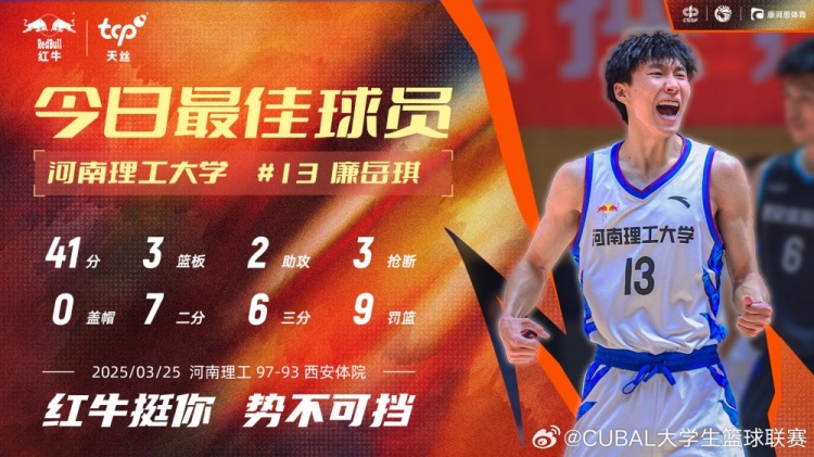 除特別注明外,本站所有內(nèi)容均為九球直播整理排版,轉(zhuǎn)載請注明出處:41分3板2助3斷!CUBAL今日最佳球員:河南理工大學(xué)13號廉岳琪!
