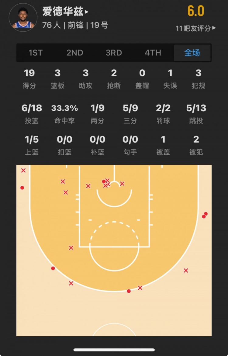 76人41號秀 阿德姆-博納 登場19.2分鐘