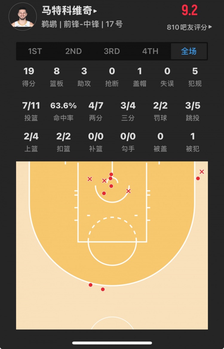 除特別注明外,本站所有內(nèi)容均為九球直播整理排版,轉(zhuǎn)載請注明出處:菜鳥丨鵜鶘馬特科維奇19分8板&米西16分9板 克內(nèi)克特僅登場4分鐘