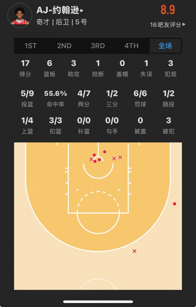 奇才23號秀 AJ-約翰遜 登場28.4分鐘