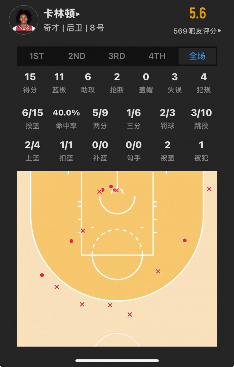奇才14號秀 卡爾頓-卡林頓 登場30.9分鐘