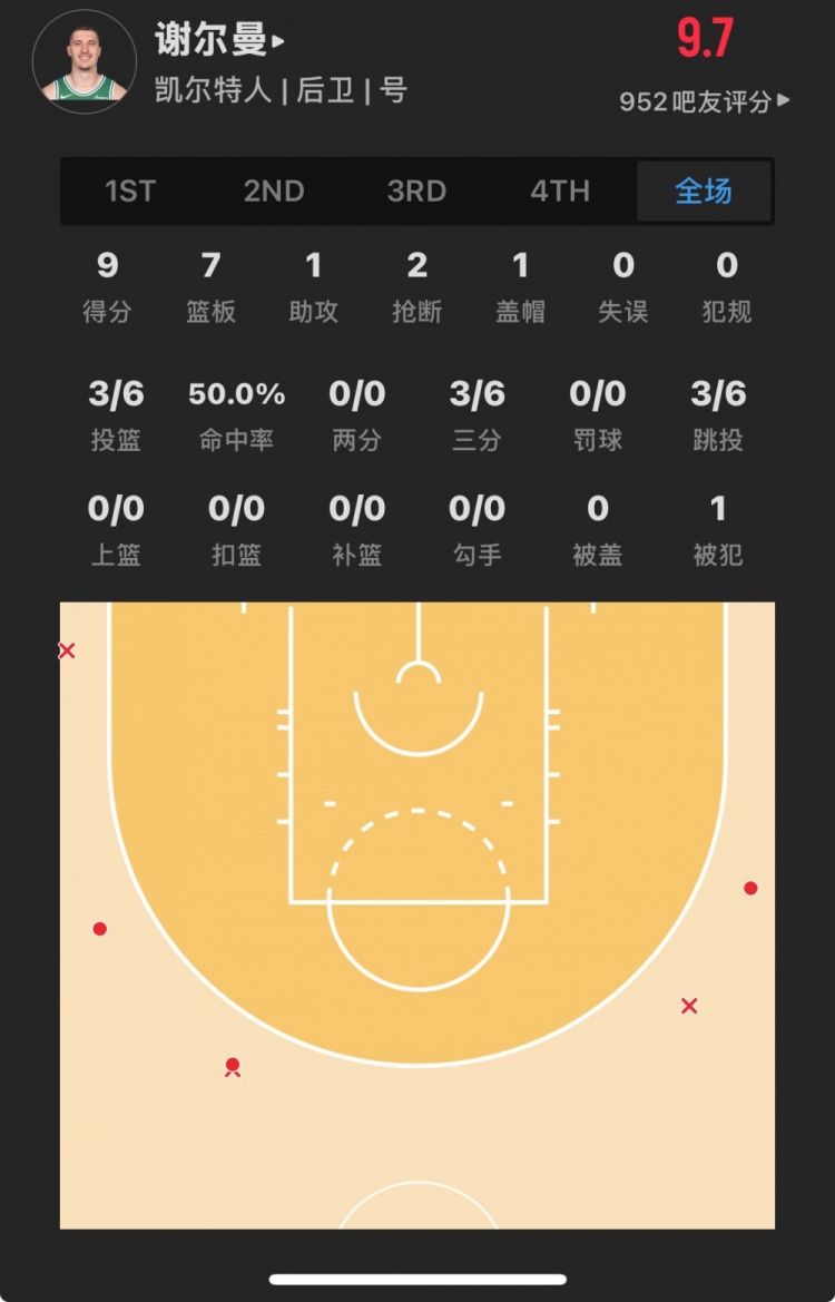 凱爾特人30號秀 貝勒-謝爾曼 登場28.2分鐘