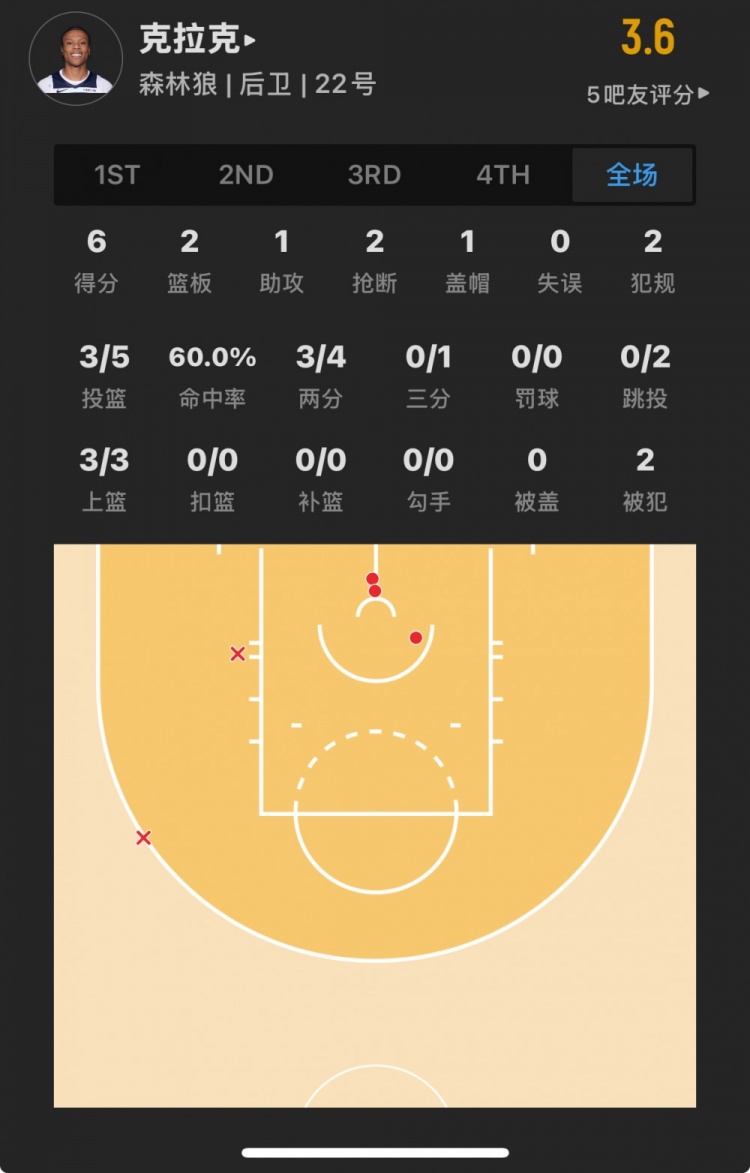 森林狼23年53號秀 杰倫-克拉克 登場18.5分鐘