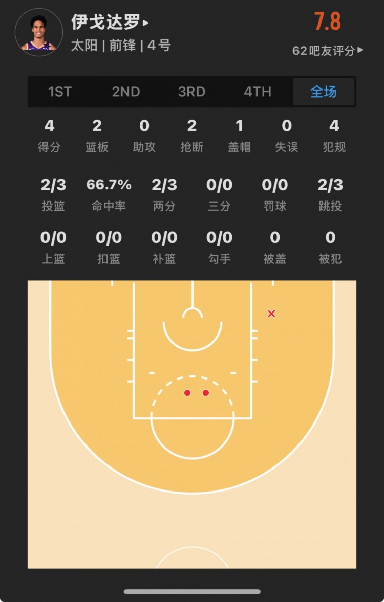 太陽40號秀 奧索-伊戈達(dá)羅 登場19.1分鐘