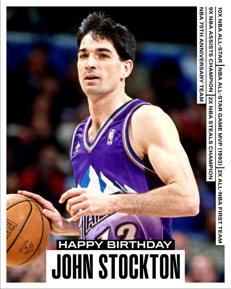 3月26日訊 今天是NBA名宿約翰-斯托克頓的63歲生日,讓我們一起祝他生日快樂。