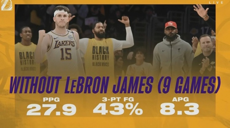 老詹不打的9場(chǎng),里夫斯場(chǎng)均27.9分8.3助&三分命中率43%