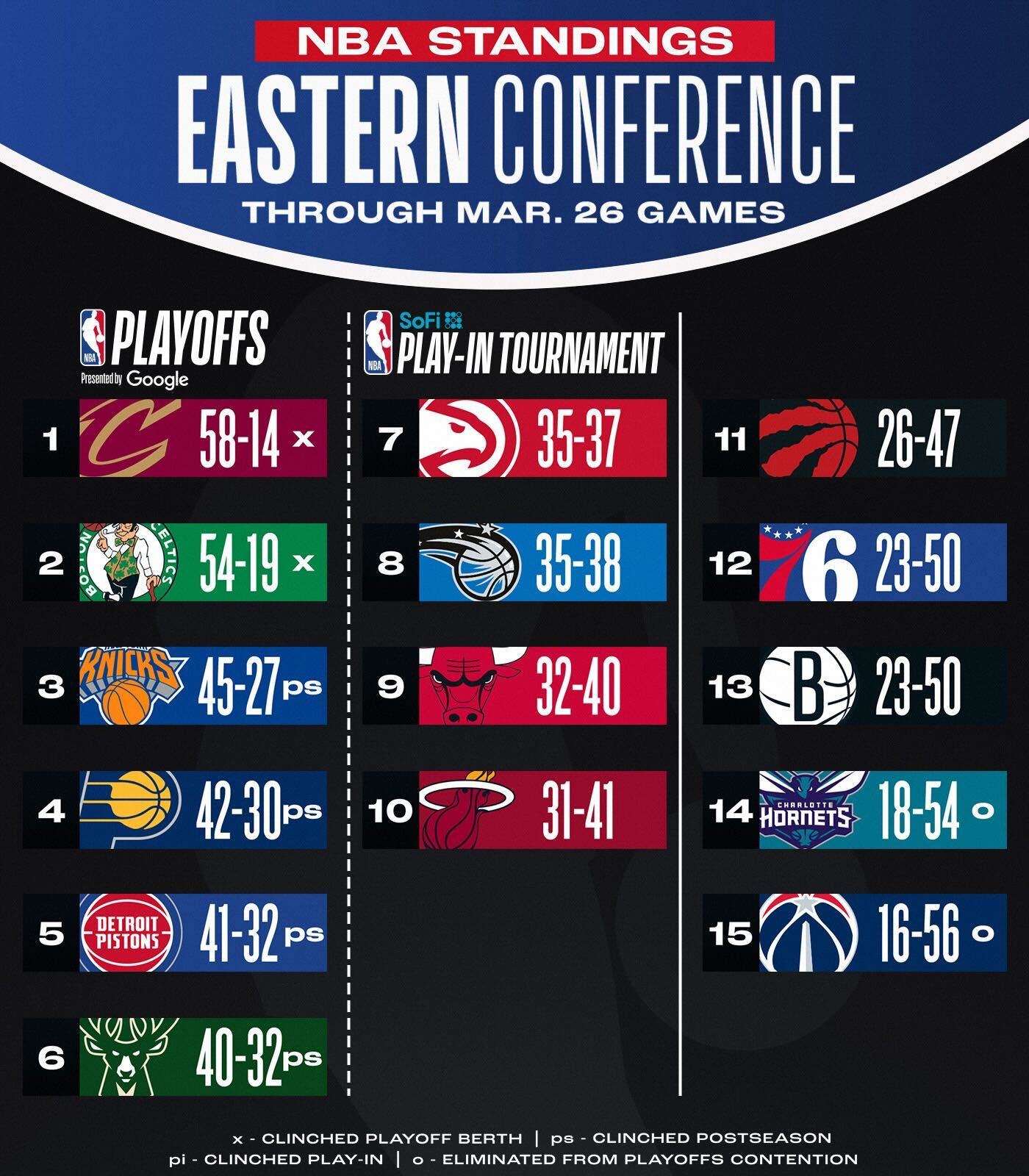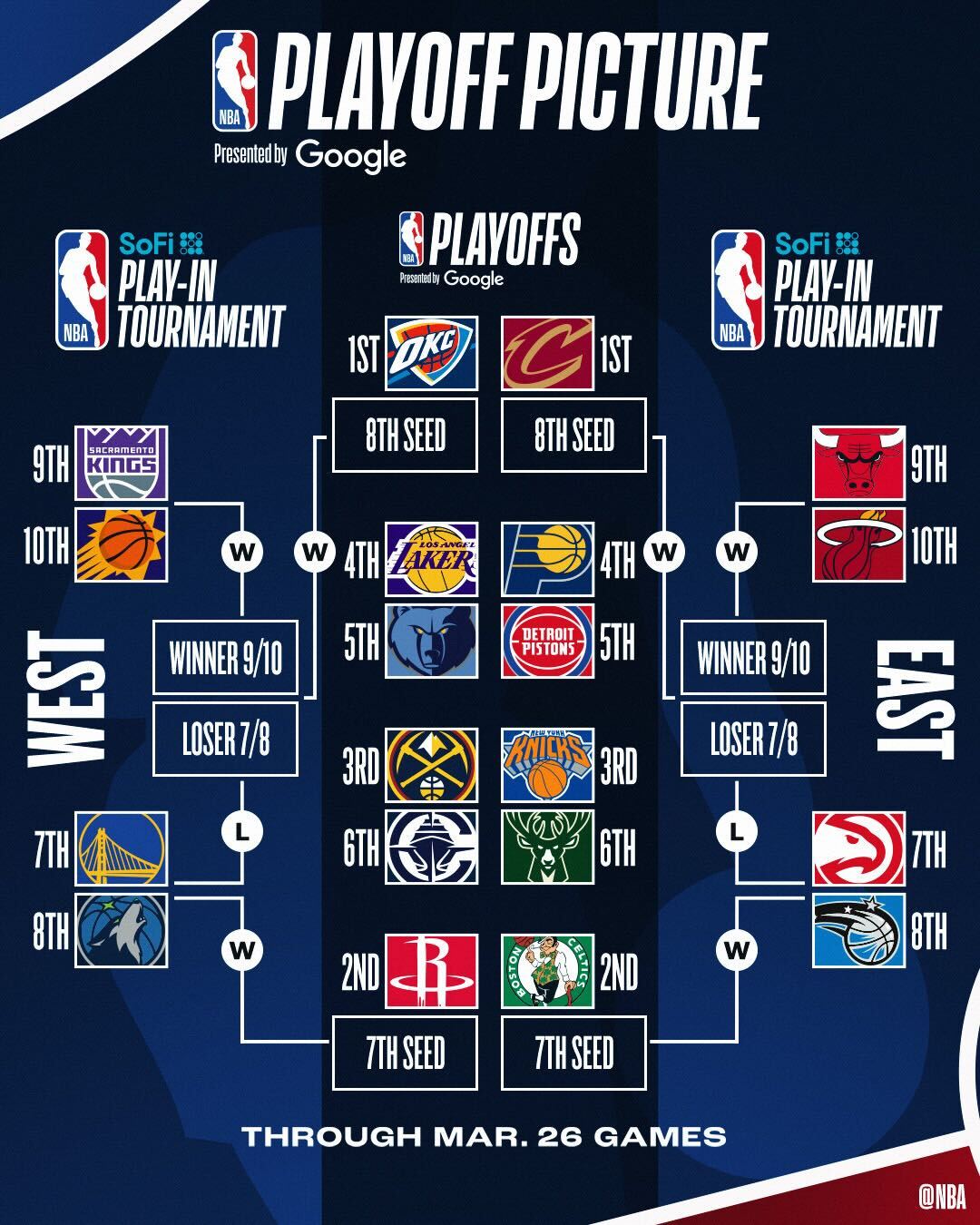 目前排名下的季后賽對陣情況和附加賽對陣情況:
