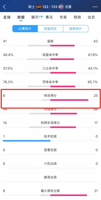 發(fā)布時(shí)間:2025年03月29日 10:33點(diǎn)擊:欄目:籃球新聞 3月29日訊 今日NBA常規(guī)賽,騎士122-133不敵活塞。本場(chǎng)比賽,兩支球隊(duì)在快攻得分方面表現(xiàn)差異很大,活塞全場(chǎng)快攻得分為25分,而騎士?jī)H僅只有6分。 除特別注明外,本站所有內(nèi)容均為九球直播整理排版,轉(zhuǎn)載請(qǐng)注明出處:壓制東部第一!活塞全場(chǎng)快攻得分為25分 而騎士?jī)H只有6分 本文標(biāo)簽: 籃球 nba 活塞 騎士