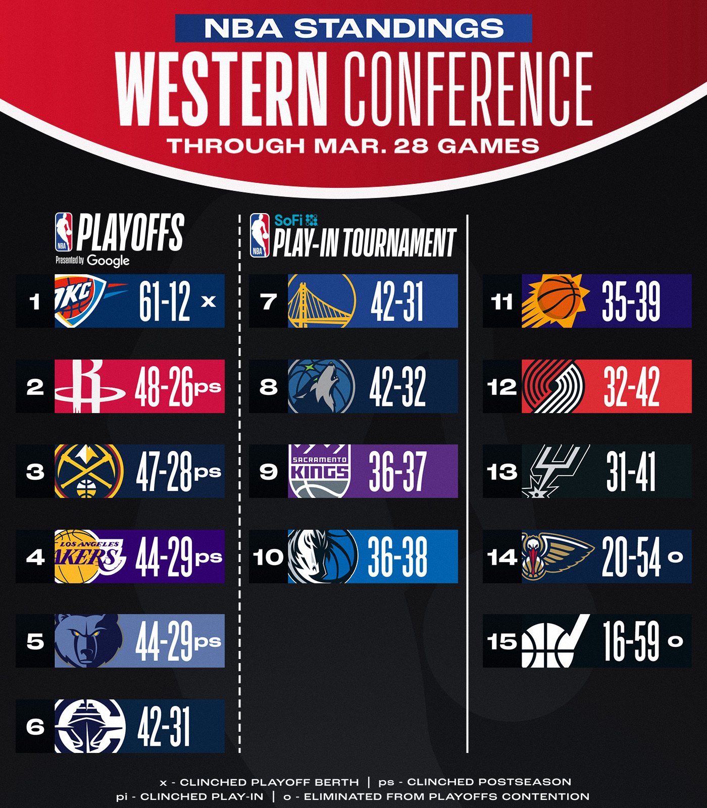 太陽遭森林狼賽季橫掃(0-4),位列第11,落后第10的獨行俠1個勝場;
