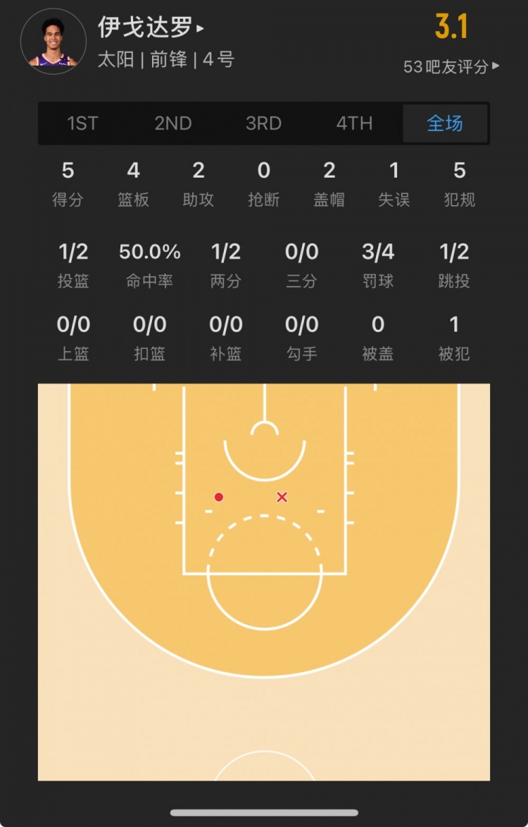 太陽40號秀 奧索-伊戈達(dá)羅 登場19.6分鐘