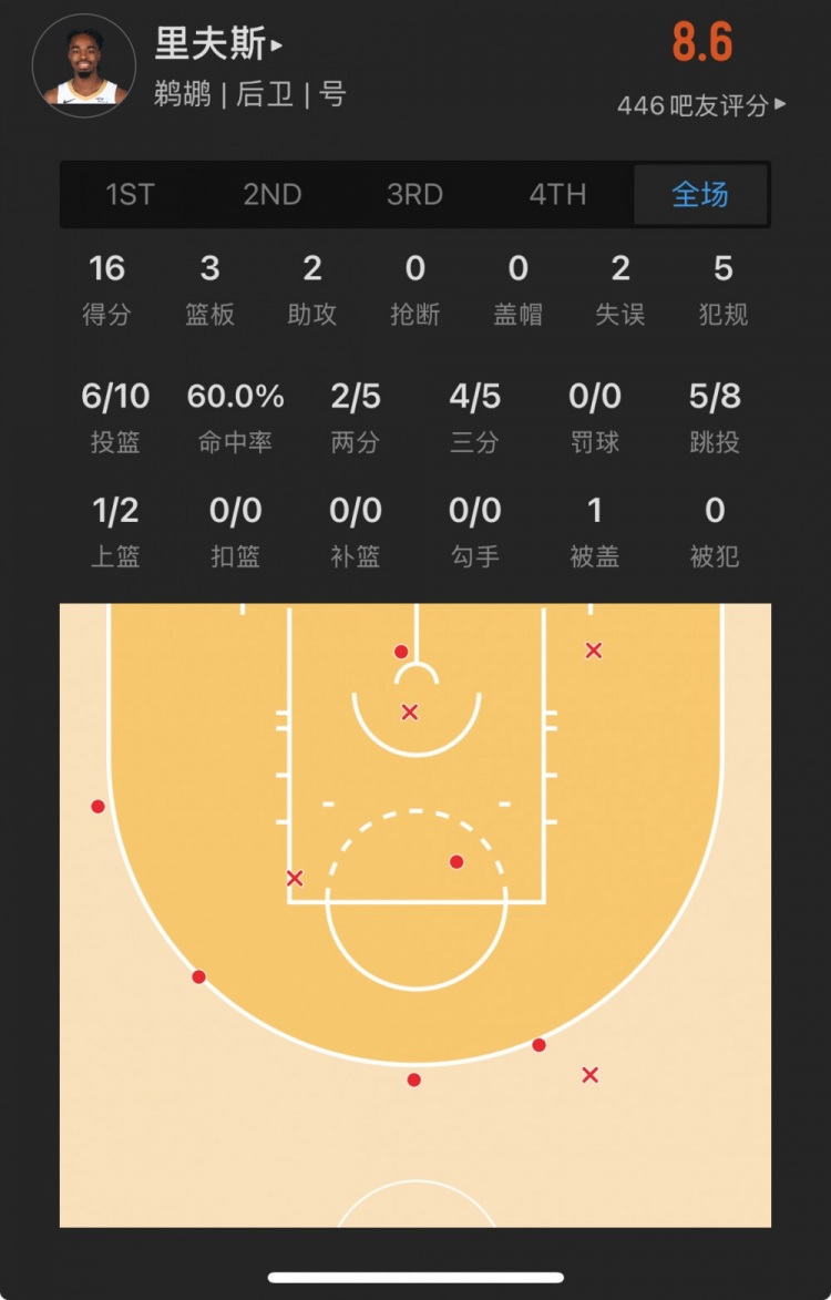 除特別注明外,本站所有內(nèi)容均為九球直播整理排版,轉(zhuǎn)載請注明出處:菜鳥丨狀元里薩謝21中12砍生涯新高36分 謝潑德復(fù)出6分2板3助2斷