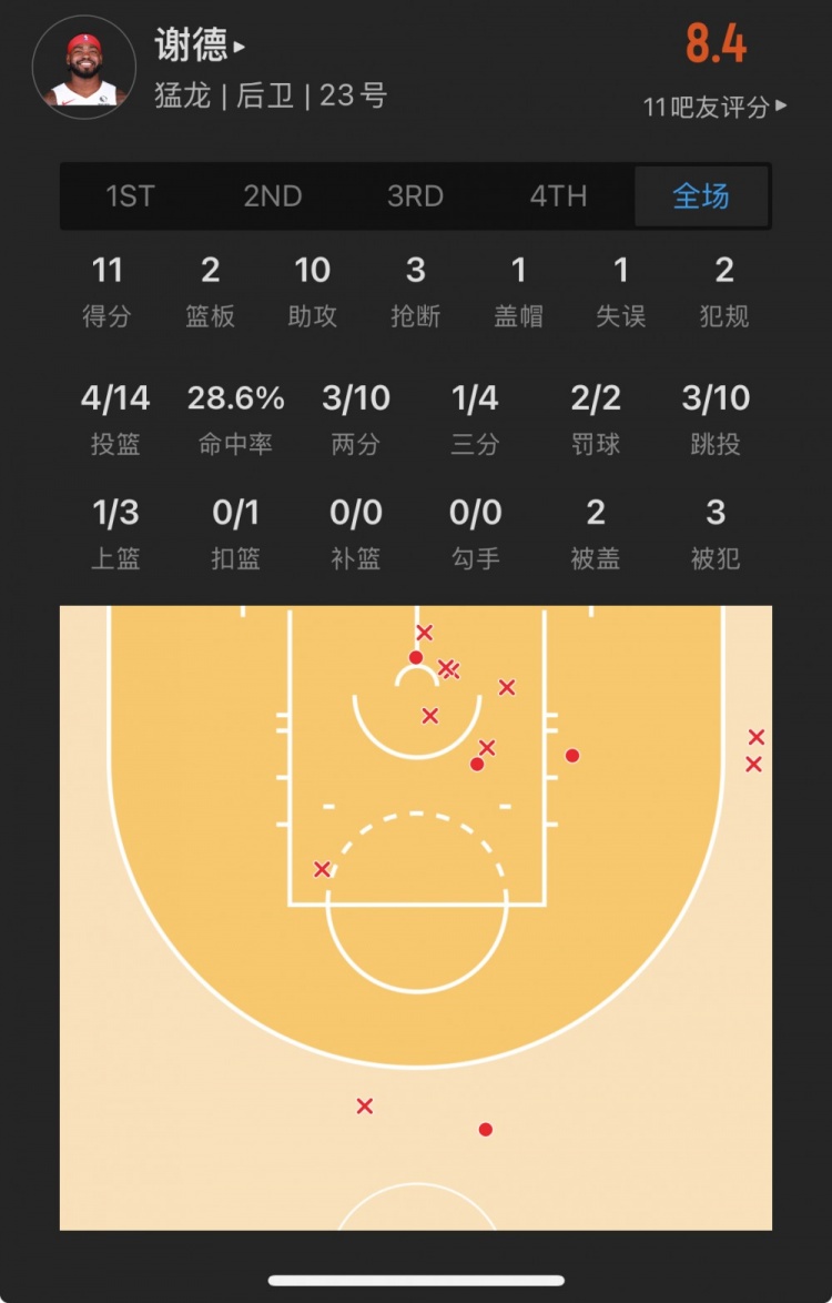 菜鳥丨狀元里薩謝21中12砍生涯新高36分 謝潑德復(fù)出6分2板3助2斷