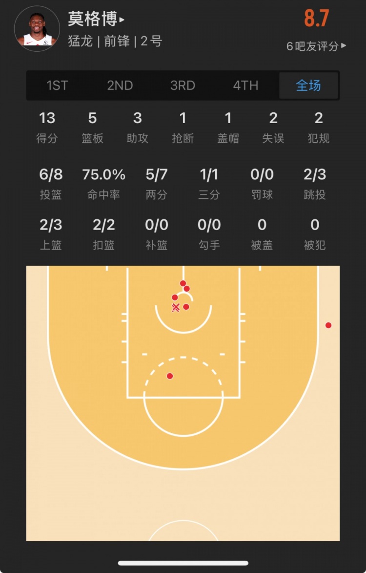 猛龍31號秀 喬納森-莫格博 登場25.1分鐘