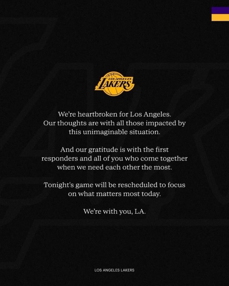 - 湖人官方:為洛杉磯感到心碎 我們與所有受到災(zāi)難影響的人同在