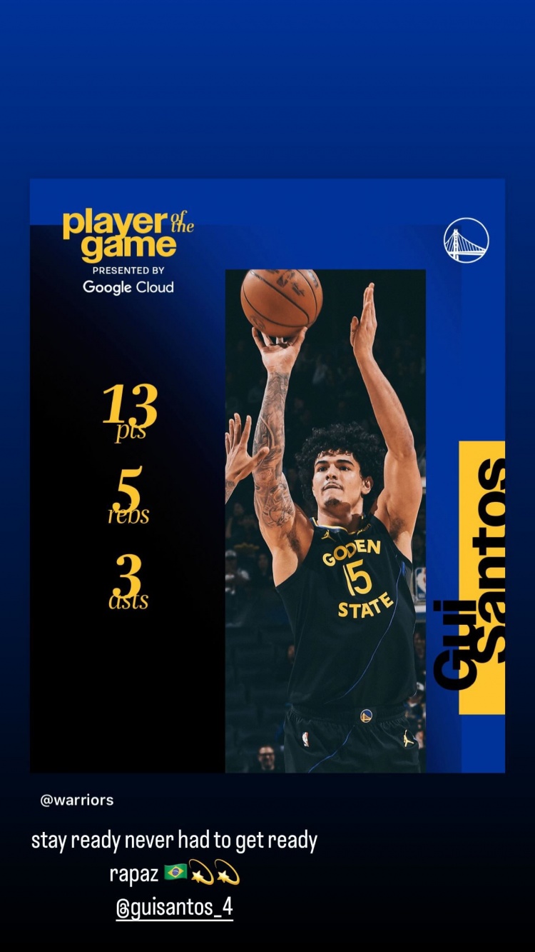 賽后李凱爾轉(zhuǎn)發(fā)桑托斯本場數(shù)據(jù),并寫道:“做好萬全準備,從容應對挑戰(zhàn),這個年輕人@桑托斯。”