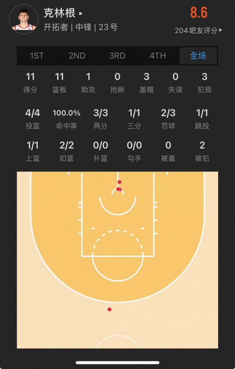 除特別注明外,本站所有內(nèi)容均為九球直播整理排版,轉(zhuǎn)載請(qǐng)注明出處:【菜鳥】克林根11分11板3帽 29號(hào)秀科利爾8分9助 狀元里薩謝5分