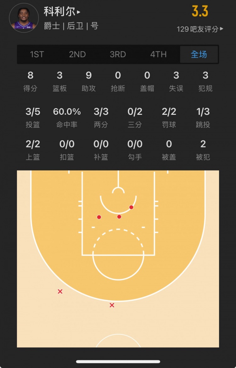 爵士29號(hào)秀 以賽亞-科利爾 登場(chǎng)33.5分鐘