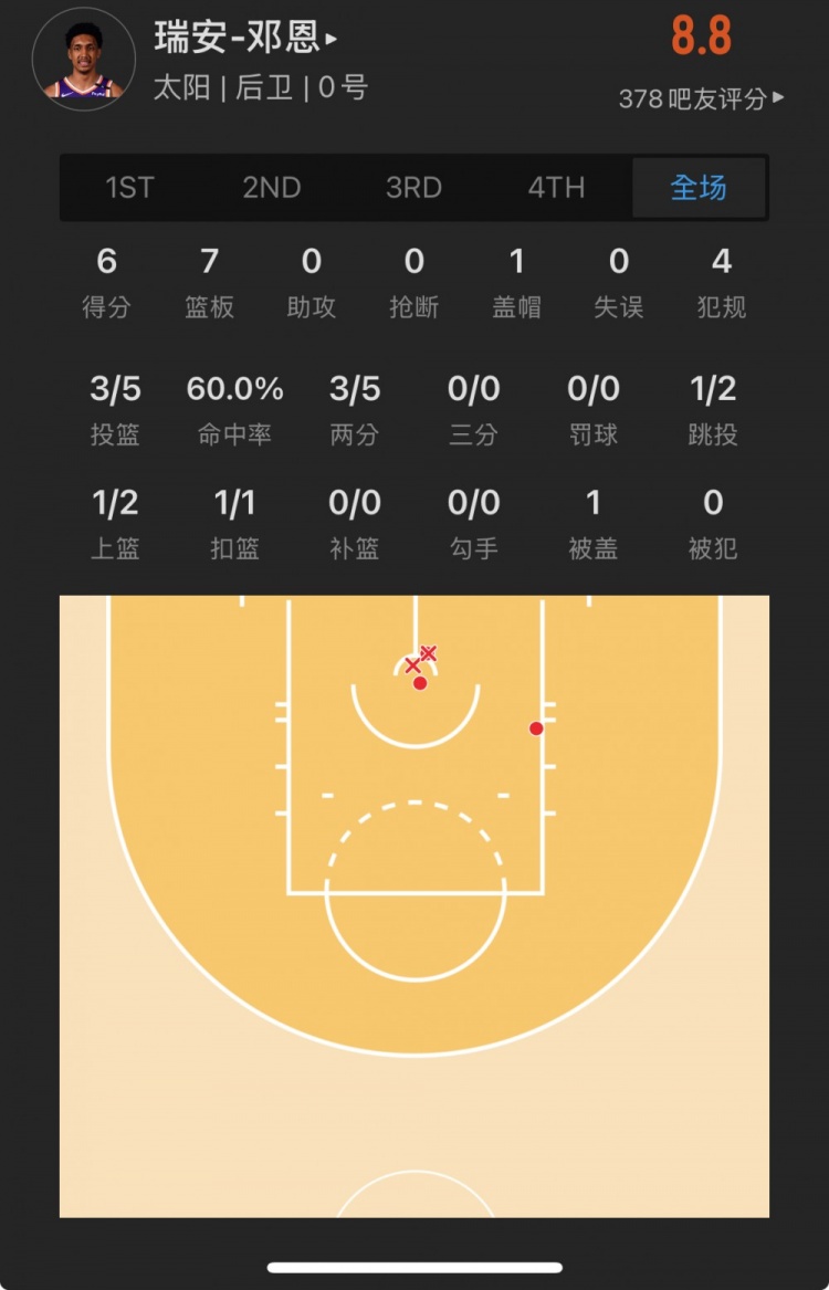 太陽28號(hào)秀 瑞安-鄧恩 登場(chǎng)16.4分鐘
