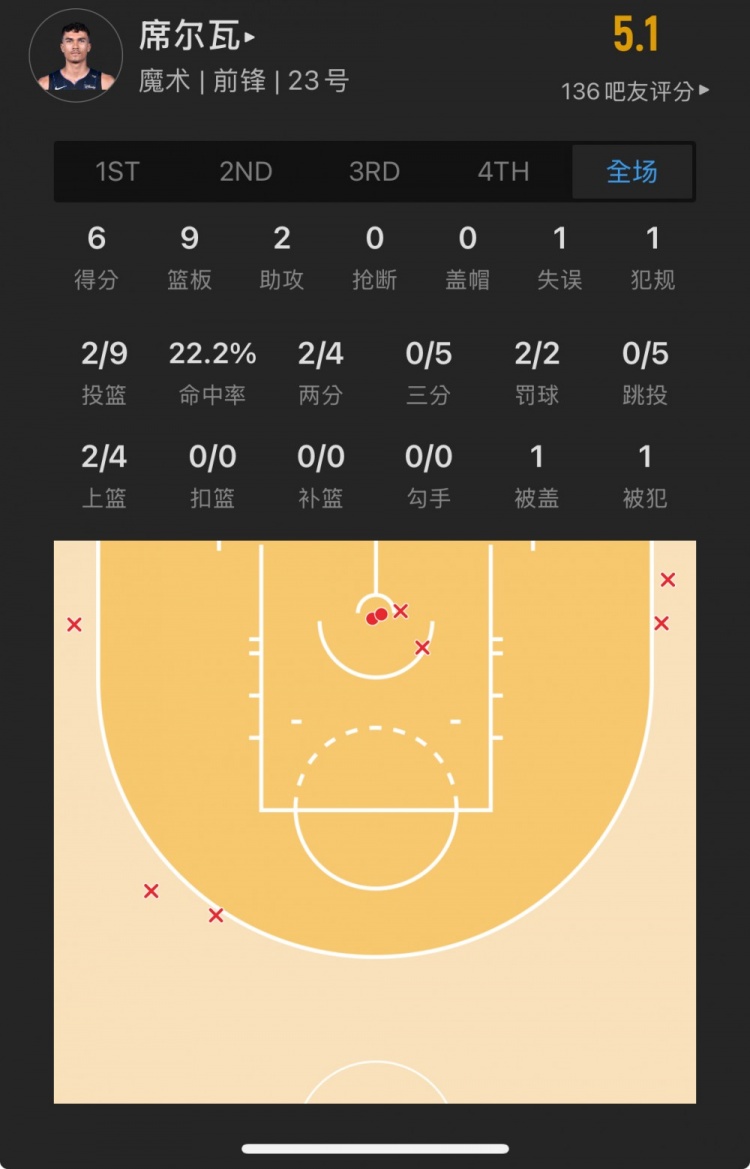 魔術(shù)18號(hào)秀 特里斯坦-達(dá)-席爾瓦 登場(chǎng)23.8分鐘