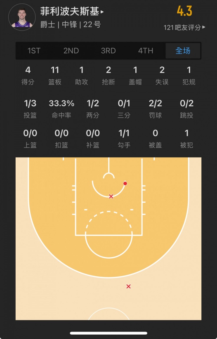 爵士32號(hào)秀 凱爾-菲利波夫斯基 登場(chǎng)23.1分鐘