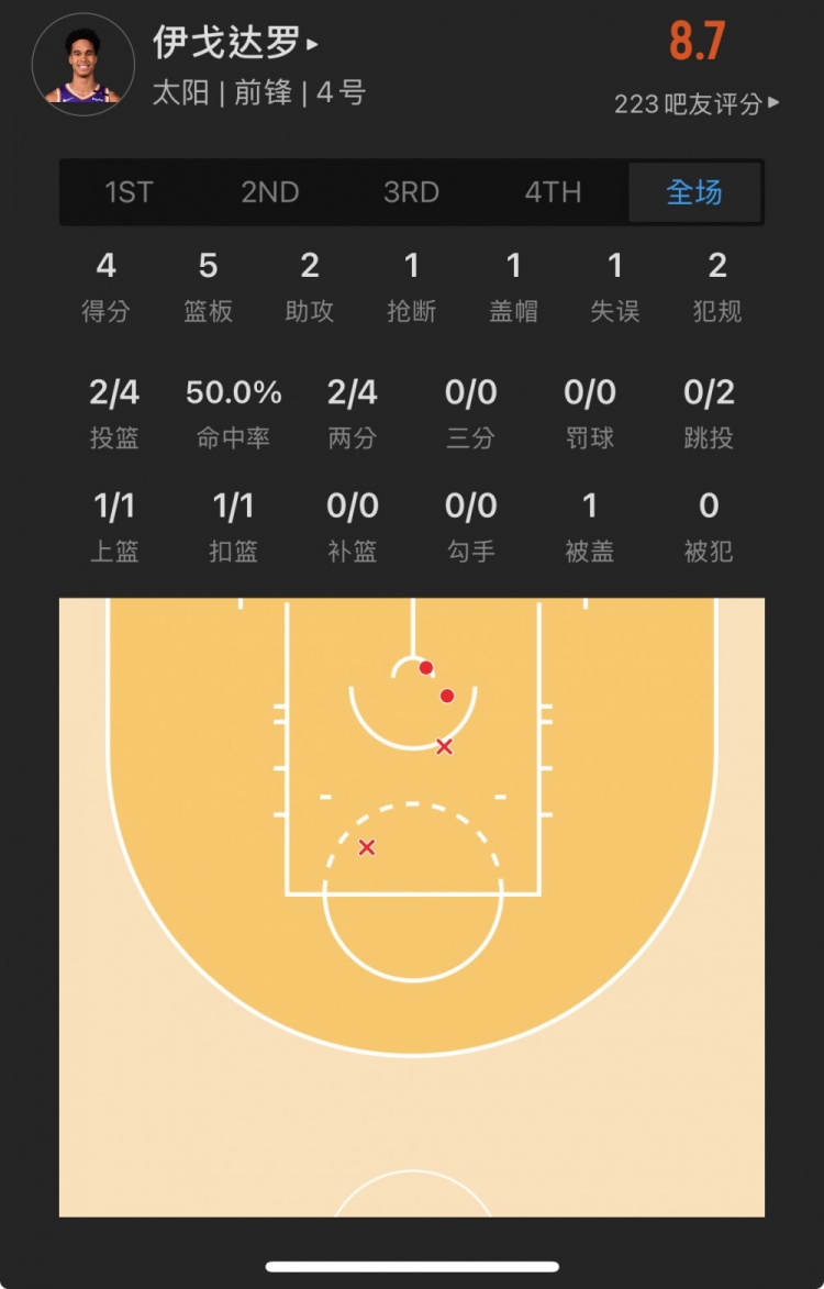 太陽40號(hào)秀 奧索-伊戈達(dá)羅 登場(chǎng)25.4分鐘