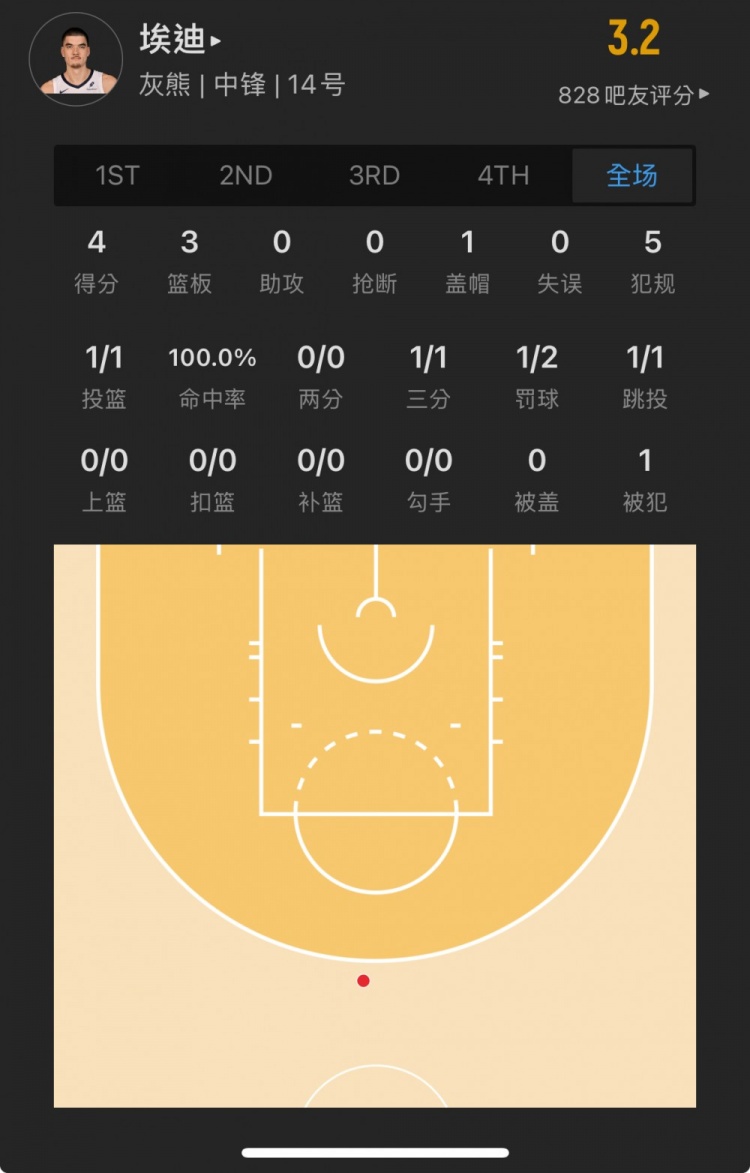 灰熊9號(hào)秀 扎克-埃迪 登場(chǎng)17.6分鐘
